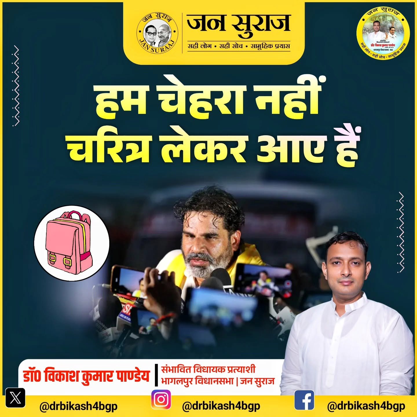 जन सुराज की लड़ाई विकास को वंशवाद से, नीति को निज़ी स्वार्थ से और जन-जन की आवाज को राजनीतिक जुमलेबाजी से मुक्त करने की ही है। इसके लिए आप सभी का साथ, सहयोग, विश्वास और आशीर्वाद चाहिए।